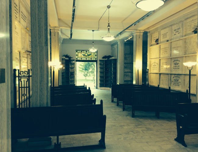- Woodland Mausoleum - Chapel of the Ascension, glass front niches